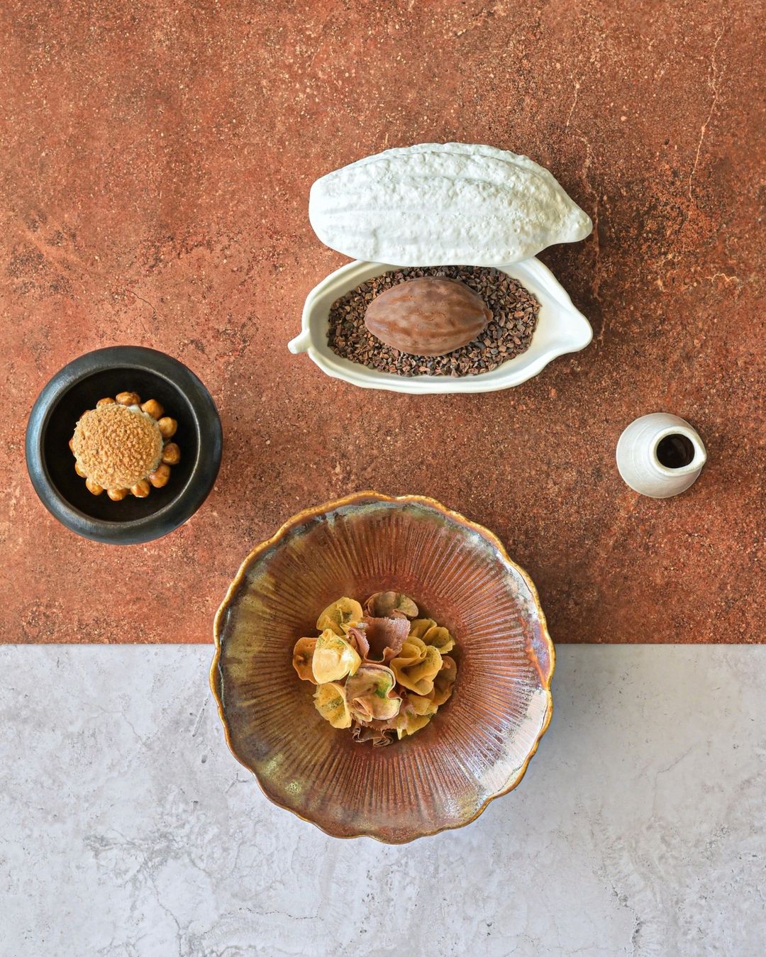 The restaurant’s bespoke tableware adds to the culinary experience, designed by a ceramicist from Chef’s native island, Martinique. These unique pieces, inspired by the depths of the Caribbean Sea, tell a story and are a focal point of the dining experience.